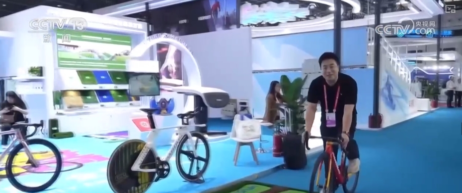 在海南国际会展中心8号展厅的山东展区,可以看到三桶洗衣机和独特口味的崂山白花蛇草水,还有德州扒鸡等国货潮品。除了这些,也可以选择骑着专业的自行车边健身边逛消博会。随着全民健身的推广和普及,在山东的公交车站就可以随时随地来一场简单的健身。