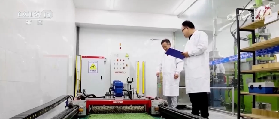 某企业技术研发总工程师林宝钢介绍,这是他们自主研发的滑雪人造草坪,具有清洁、润滑、低摩擦和高抗静电性能,能模拟天然或人工雪场。他们陆续推出了负离子草、降温草、装饰草、图案草等各种功能人造草,为绿色运动、健康运动提供了新的方案。